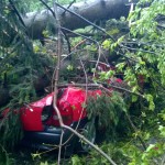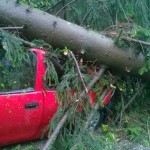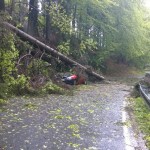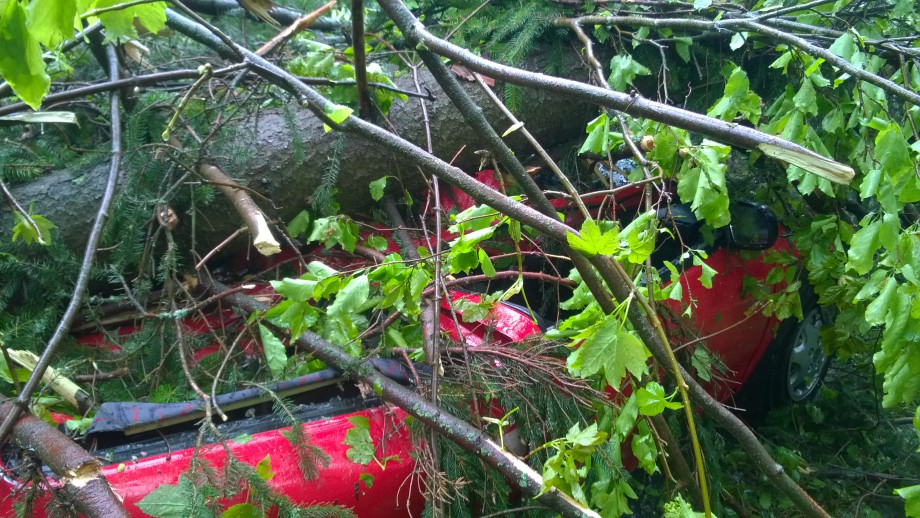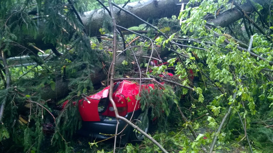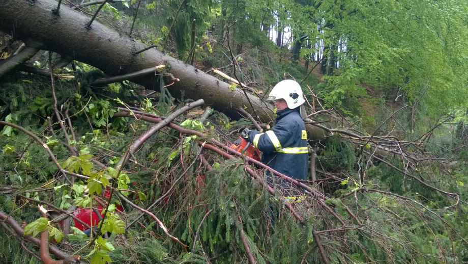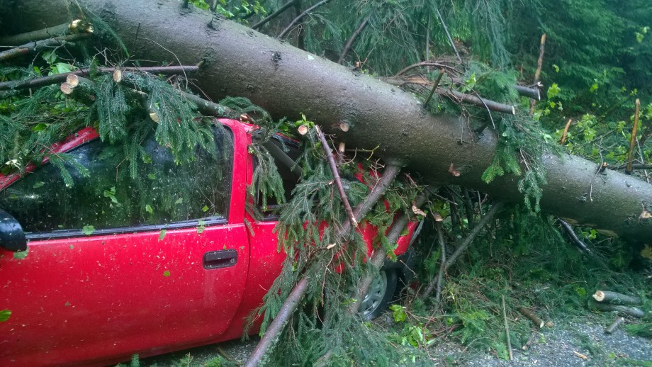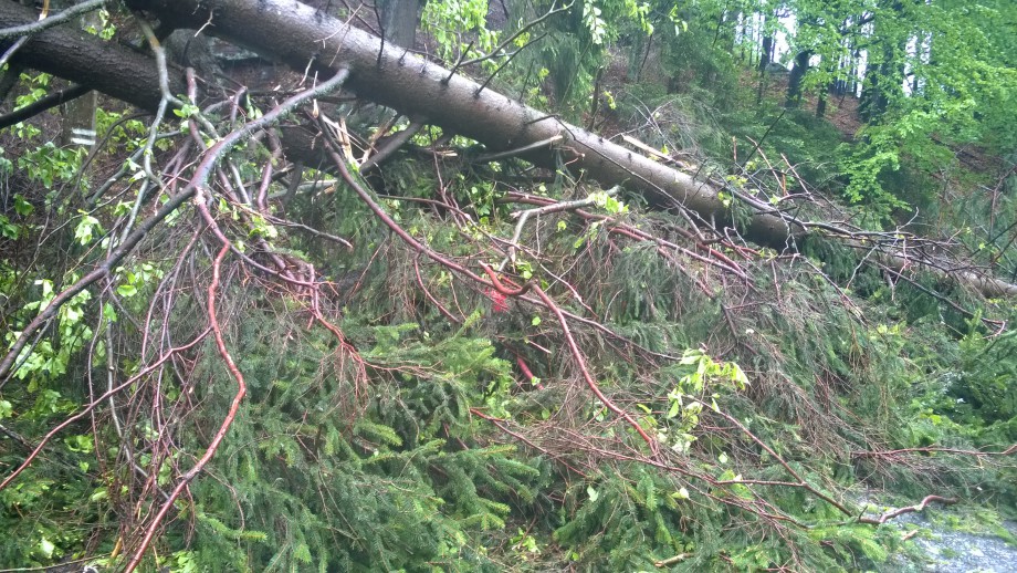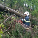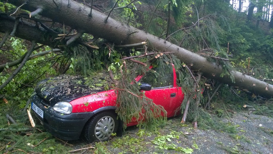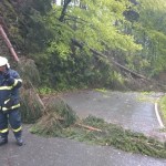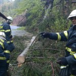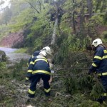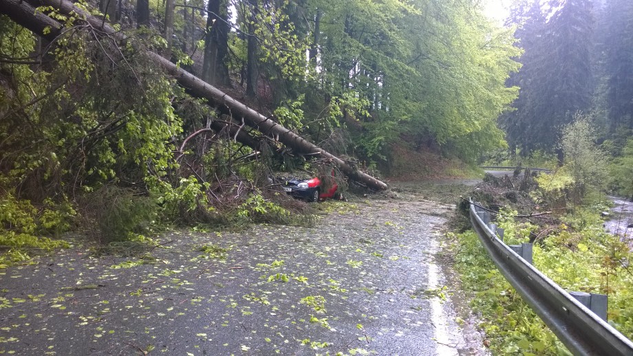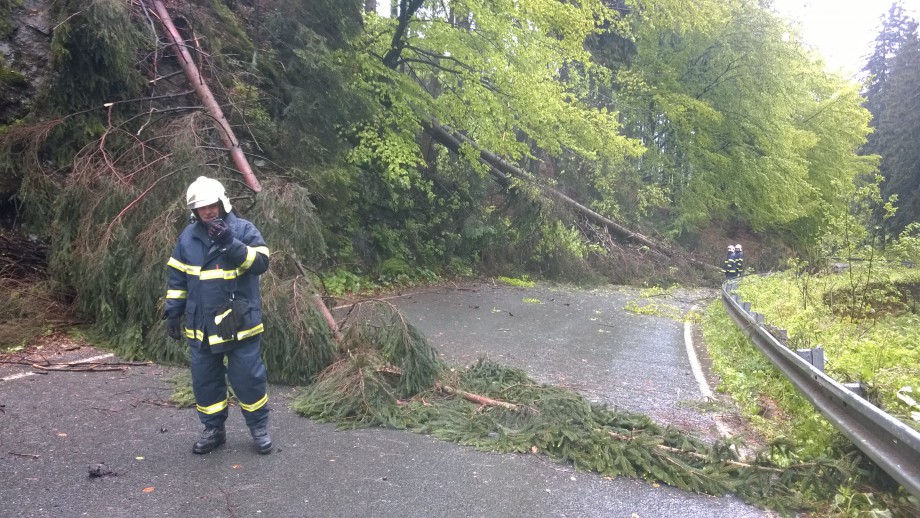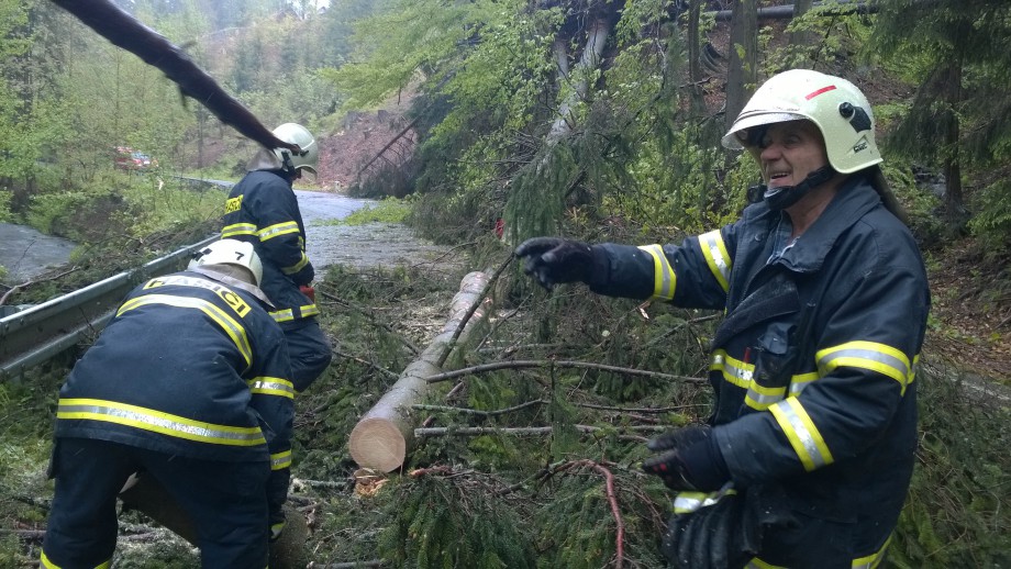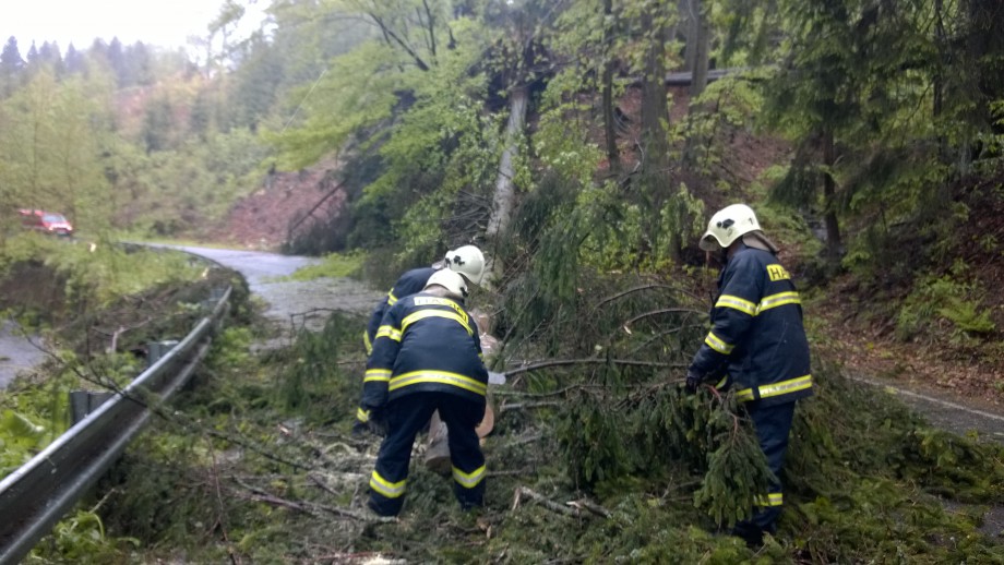 Téměř ihned po návratu byl jednotce vyhlášen další výjezd. V 11.48 hod. Také se jednalo o spadlé stromy, tentokrák na silnici Deštné – Skuhrov. Na místě bylo zjištěno, že se jedná o dva vzrostlé smrky, které spadly na projíždějící osobní automobil, který byl tímto poškozen. Komunikace byla v době příjezdu jednotky neprůjezdná. Jednotka provedla rozřezáním kmenů zprůjezdnění komunikace. Řidička neutrpěla žádné zranění a při příjezdu hasičů byla již mimo vozidlo. Po dohodě s řidičkou bylo vozidlo ponecháno na místě do vyřešení případu. Jednotka na místě spolupracovala s Policií ČR. Dále bylo prováděno řízení provozu na komunikaci. Při návratu na základnu byl odstraněn další spadlý strom přes komunikaci v Deštném, který byl pomocí motorové pily rozřezán a odklizen z komunikace. Poté se jednotka vrátila na základnu.