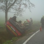 V neděli 21.9.2014 v 10.00 hod. dopravní nehoda jednoho osobního vozidla mezi obcemi Deštné a Sedloňov,které skončilo po smyku na mokré vozovce v příkopě a bylo převrácené na střeše. Ve vozidle cestovali čtyři cestující a jedna osoba byla lehce zraněná, zbylí se obešli bez zranění. Při příjezdu jednotky na místo zásahu byli již cestující mimo havarované vozidlo a jedna lehce zraněná osoba byla v péči člena Horské služby Deštné v Orlických horách. Jednotka na místě asistovala při předlékařské pomoci, usměrňovala provoz na silnici a po zadokumentování nehody dopravní policií jednotka provedla převrácení havarovaného vozidla zpět na kola a jeho odtažení mimo komunikaci,a to za pomocí navijáku. Poté byly zasypány uniklé provozní kapaliny pomocí sorbentu.