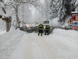 Během neděle 13.1.2019 byla jednotka vyslána celkem pětkrát k odstranění spadlých stromů přes komunikaci. Ve všech připadech se jednotka podílela na odstraňování stromů z vozovky pomocí motorové pily.