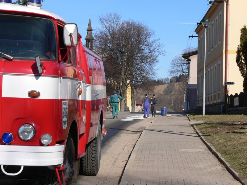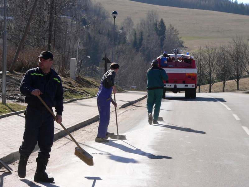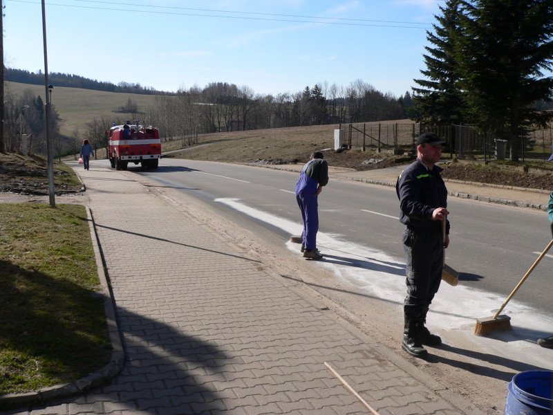 K odstranění olejové skvrny jela jednotka 13. 3. 2007 v 8.52 hod. Tato se nacházela na místní komunikaci v Deštném. Při průzkumu bylo zjištěno,že se jedná o únik oleje ze stavebního stroje UNC. Jednalo se o úsek cca 0,5mx500m. Na odstranění oleje z komunikace byl použit Vapex, který byl následně smeten a uložen do sběrné nádoby.
