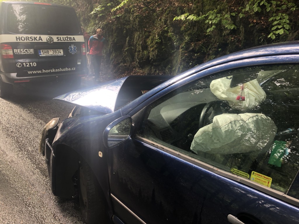 Jednotka vyjela 26.5 v 8.02 hod. k dopravní nehodě jednoho vozidla. Vozidlo zřejmě dostalo na mokré vozovce smyk vjelo do protisměru a narazilo do skály a skončilo zpět na vozovce. Po příjezdu jednotky se osoby nacházely mimo vozidlo a jedna zraněná osoba byla již v péči členů horské služby. Členové jednotky řídili provoz a na vozidle provedli protipožární opatření a odpojení akumulátoru. Po zdokumentování nehody Policií ČR vozidlo odstranili z komunikace. Spolupráce s PS Rychnov nad Kněžnou, Policií ČR, ZZS, Horská služba.